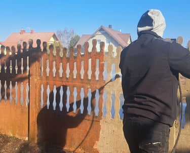 Kostka, elewacje, dachy, parkingi — gorącą wodą, z chemią lub bez.